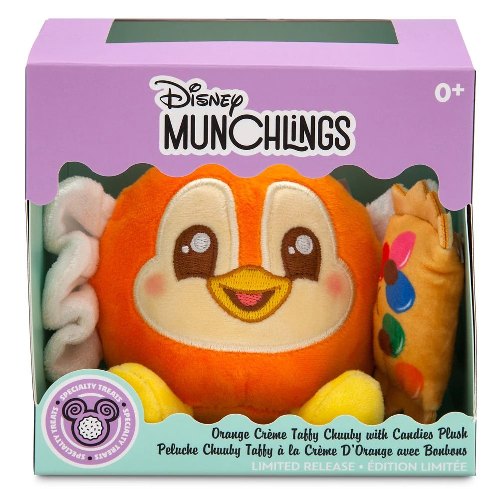 All the way from Runamuck Park, the cute little bird who welcomes Disney Parks Guests to the Mickey and Minnie’s Runaway Railway attraction is reimagined as this Chuuby Orange Crème Taffy. So very squishy and cuddly, he is part of the limited release Disney Munchlings Specialy Treats Collection and comes with a plush packet of ”candies,” making him even sweeter.