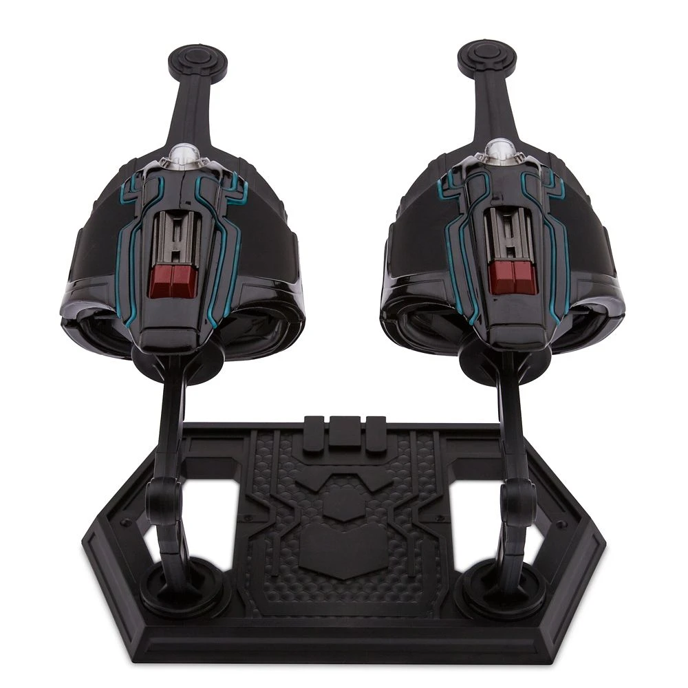 Equip your Spider-Man with the very latest gadget in the form of this pair of Nanotech Web-Shooters. The sturdy and detailed replica wrist guards feature light-up elements with sound effects, plus they project Spider-Man symbols onto any surface. In addition, the two web-shooters can be attached to the included stand.