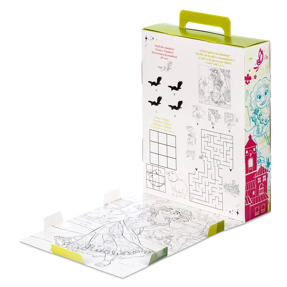 - Back of box unfolds for coloring and activity fun (utensils not included)